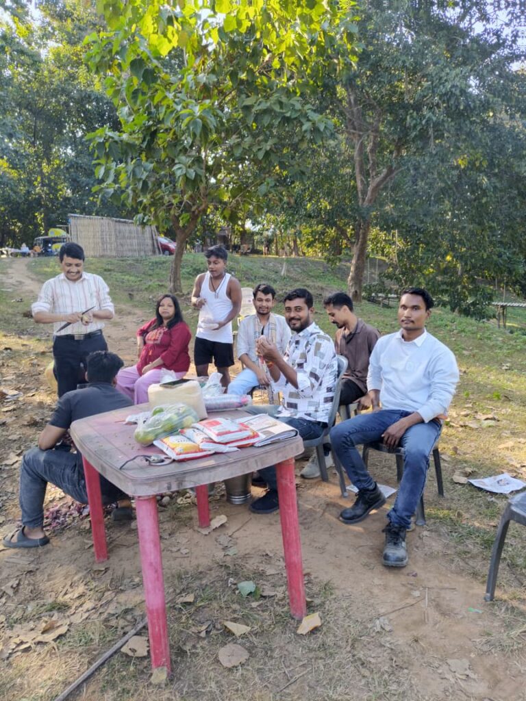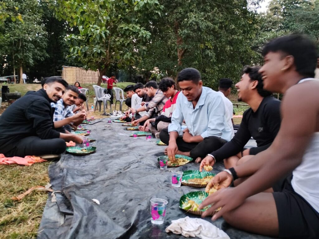 The excitement began early in the morning as we all gathered at the institute. We started our journey toward Chhaygaon, and as we moved further, the city noise was replaced by the sight of green hills and fresh air. The two-hour drive was filled with music, laughter, and snacks, setting the perfect mood for the day.